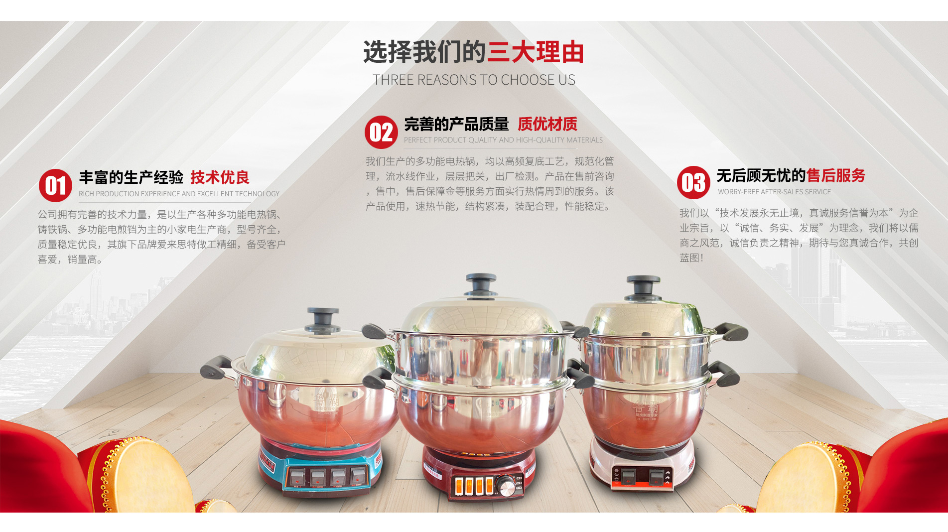 菏泽鲁霸电器有限公司拥有完善的技术力量,是以生产各种多功能电热锅、铸铁锅、多功能电煎铛为主的小家电生产商,型号齐全,质量稳定优良,其旗下品牌爱来思特做工精细,备受客户喜爱,销量高。